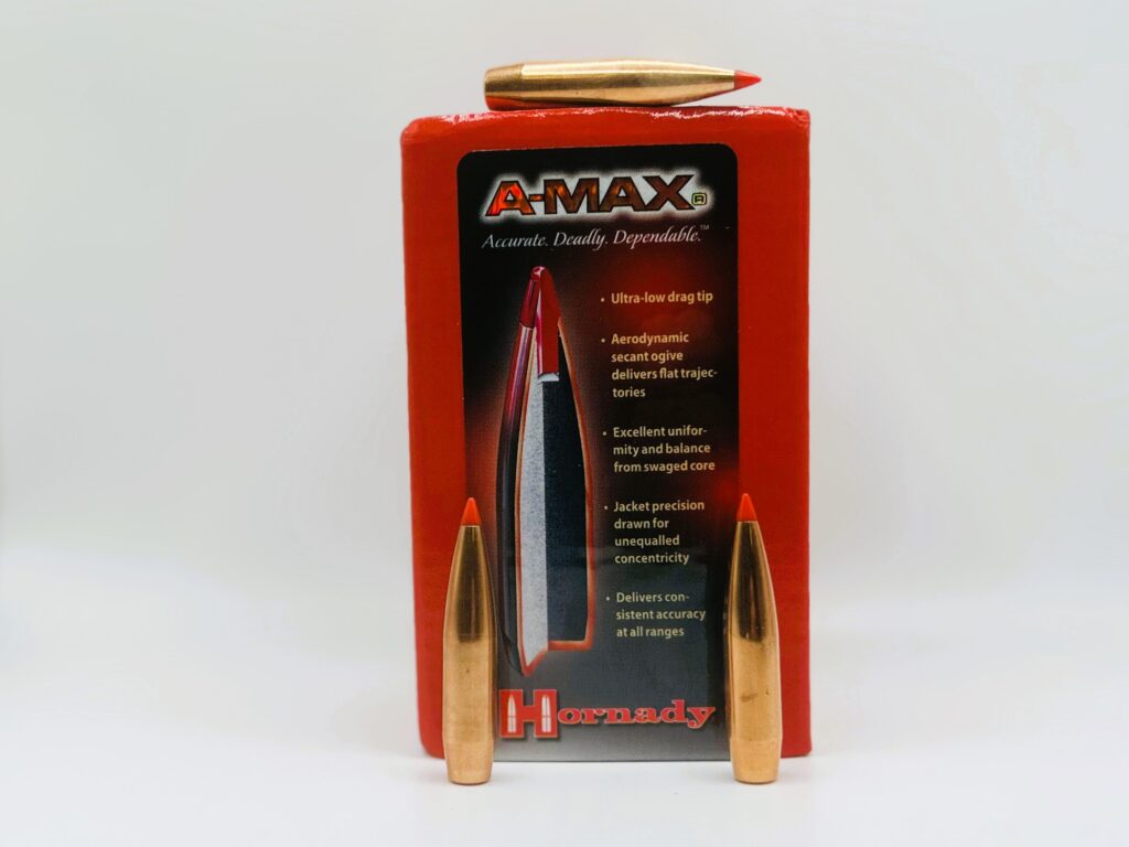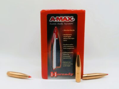 Hornady A-MAX® bullets are technologically advanced, accuracy-enhanced target bullets featuring Heat Shield® tips with the PERFECT MEPLAT (tip point). These design elements combine to deliver the highest-in-class ballistic coefficients, superior accuracy, and extreme consistency from bullet to bullet and lot to lot. With an optimum secant ogive and boattail design, along with the Heat Shield tip, Hornady ELD Match bullets achieve superior accuracy and industry-leading ballistic performance, making them the top choice for precision shooting.