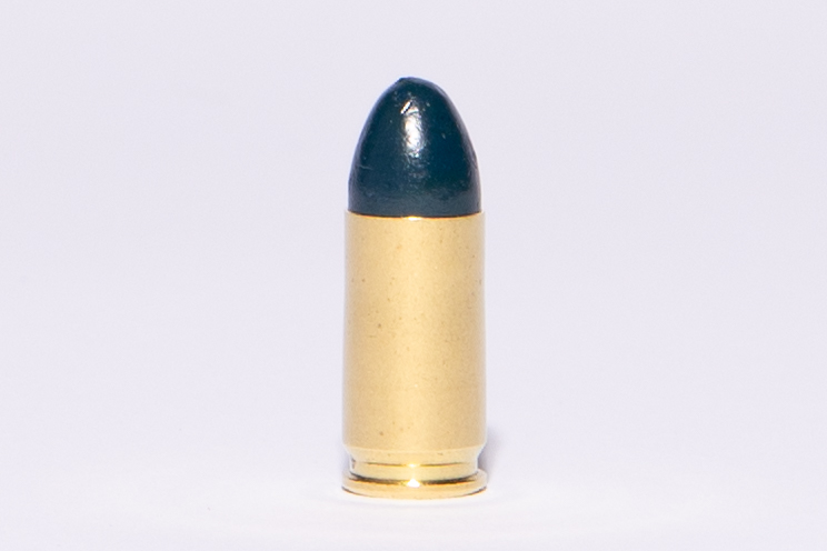 The Polymer Coated 9mm Bullet contains a lead core coated in a high-temperature polymer.